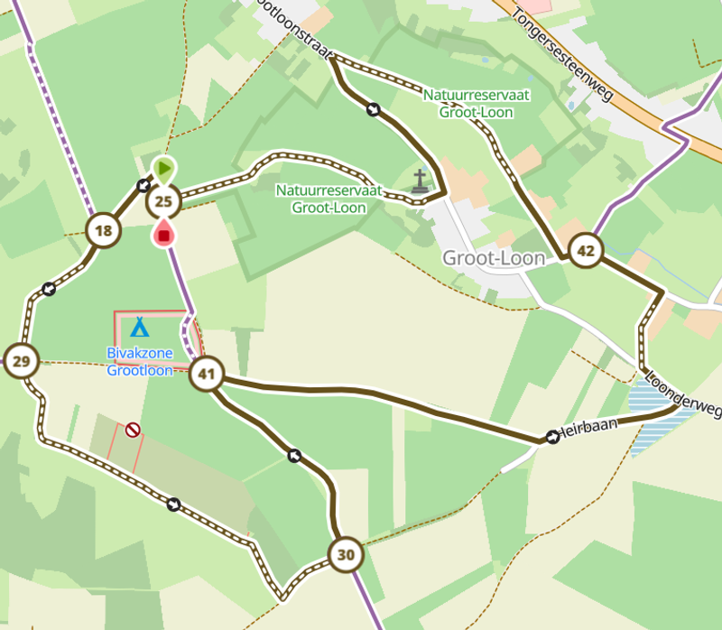 - Tussen 25 en 42: natuurreservaat Groot-Loon